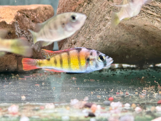 Afrikanische Buntbarsche sind eine faszinierende Fischgruppe, die in den Gewässern Afrikas beheimatet ist, insbesondere in den großen Seen wie dem Tanganjikasee, dem Malawisee und dem Viktoriasee. Mit ihrer leuchtenden Farbenpracht und interessanten Verhaltensweisen sind sie eine beliebte Wahl für Aquarienliebhaber. Diese Fische sind für ihre Vielfalt an Farben und Mustern bekannt und zeichnen sich durch eine große Anpassungsfähigkeit aus. Sie bevorzugen gut strukturierte Aquarien mit Versteckmöglichkeiten und einem stabilen, leicht alkalischen pH-Wert. Afrikanische Buntbarsche sind nicht nur ein echter Blickfang, sondern auch für ihre lebendige und teils territorial geprägte Natur bekannt, was sie zu einer spannenden Ergänzung für jedes Aquarienreich macht.