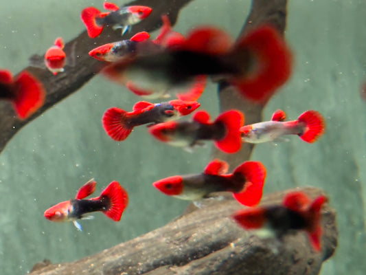 Red Cap Koi Tuxedo Guppy Poecilia reticulata Männchen