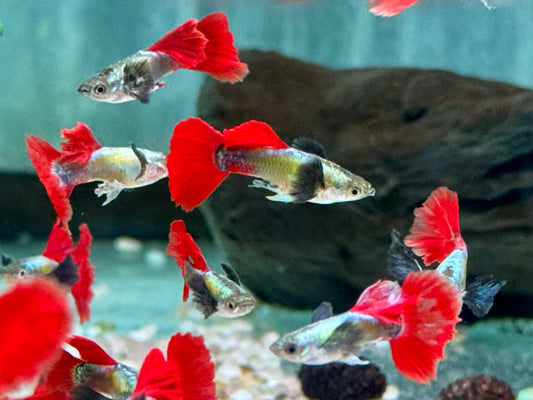 Guppy Dumbo Platinium red Tail Poecilia reticulata Männchen