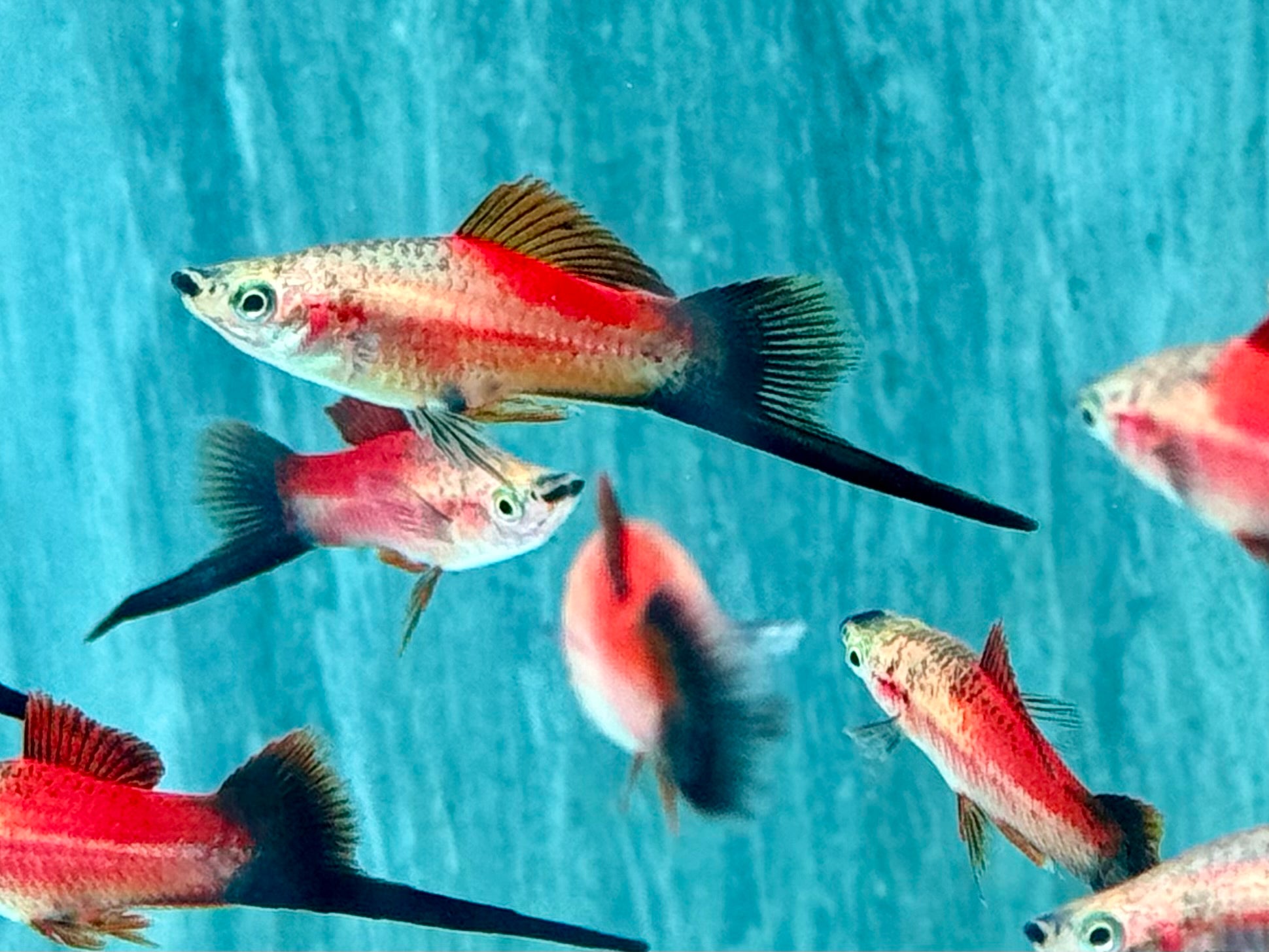 - Versteckmöglichkeiten: Da Schwertträger gesellige Fische sind, ist keine besondere Anzahl an Verstecken nötig, aber Pflanzen und Dekor bieten gute Rückzugsmöglichkeiten.