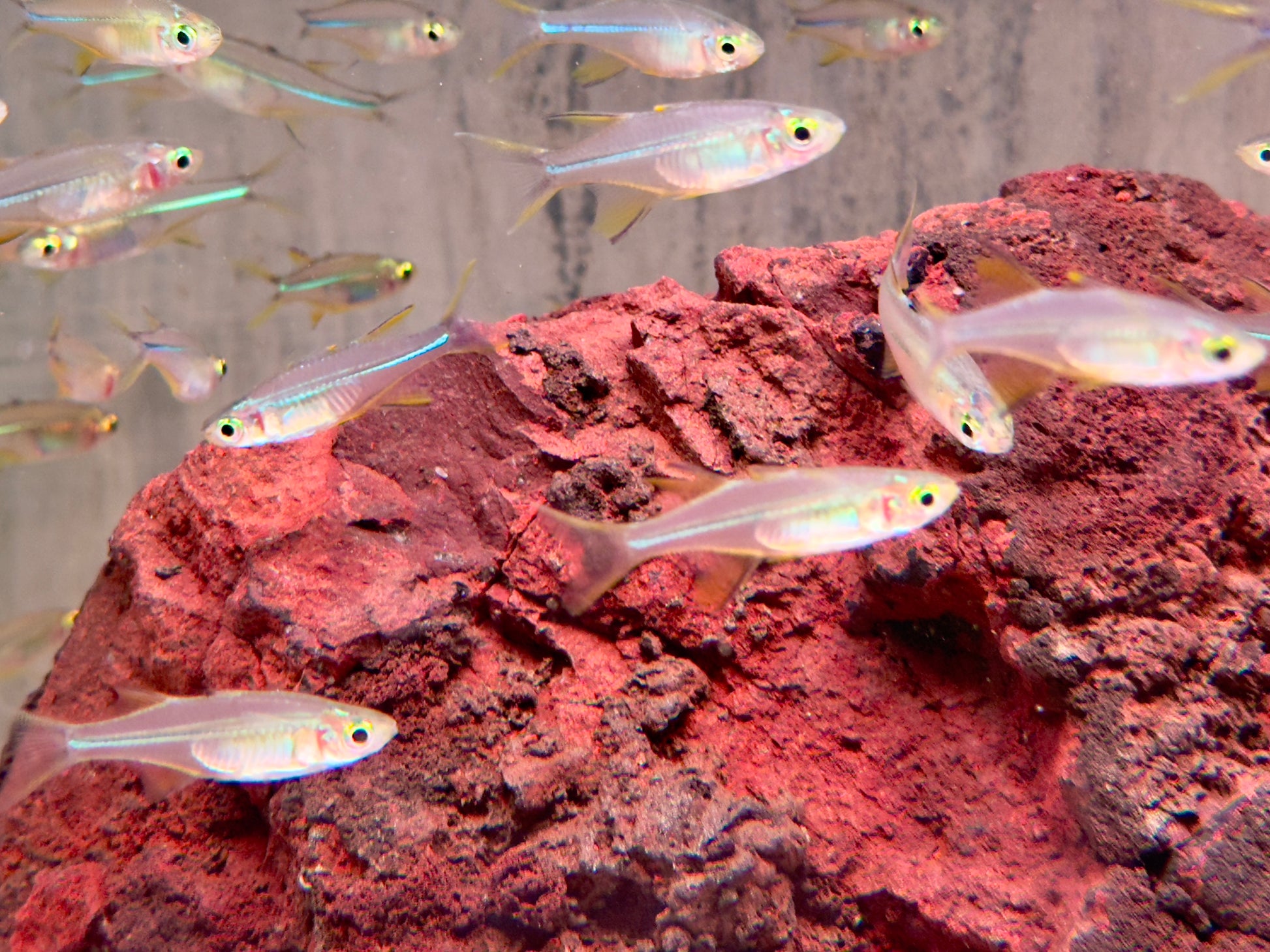 - Dekoration: Diese Fische bevorzugen eine gut strukturierte Umgebung, die jedoch auch genügend Platz zum Schwimmen lässt. Wurzeln, Steine und pflanzliche Bepflanzung bieten den Fischen Schutz und fördern ihre natürliche Verhaltensweise. Dichte Pflanzenansammlungen sind jedoch nicht notwendig, da sie gerne im freien Wasser schwimmen.