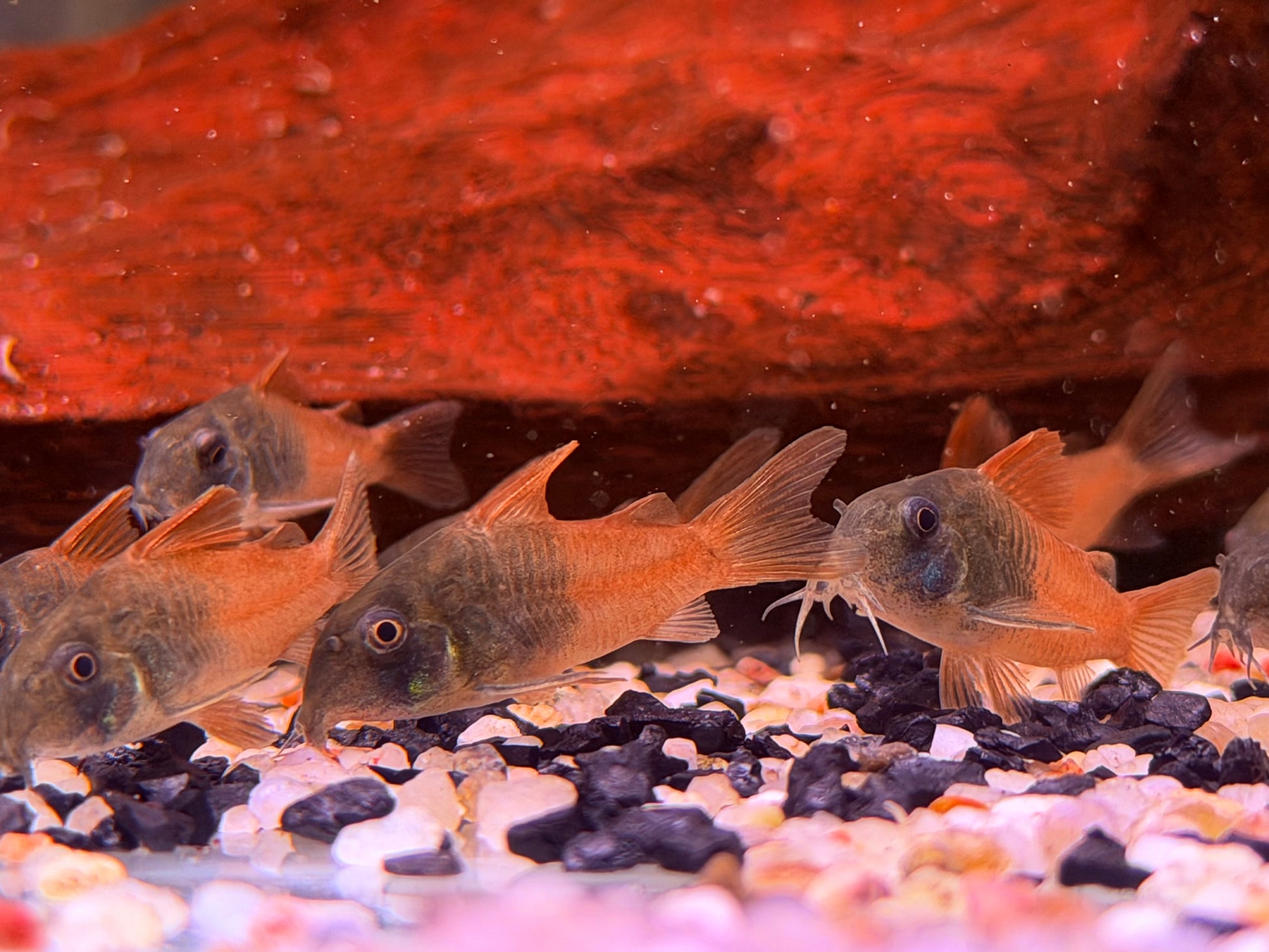 Hoplisoma-Welse fühlen sich in kleinen Gruppen (5+) besonders wohl und zeigen dann ihr natürliches Verhalten. Sie sind tagsüber meist am Boden aktiv, können aber auch in der Dämmerung aktiv werden.