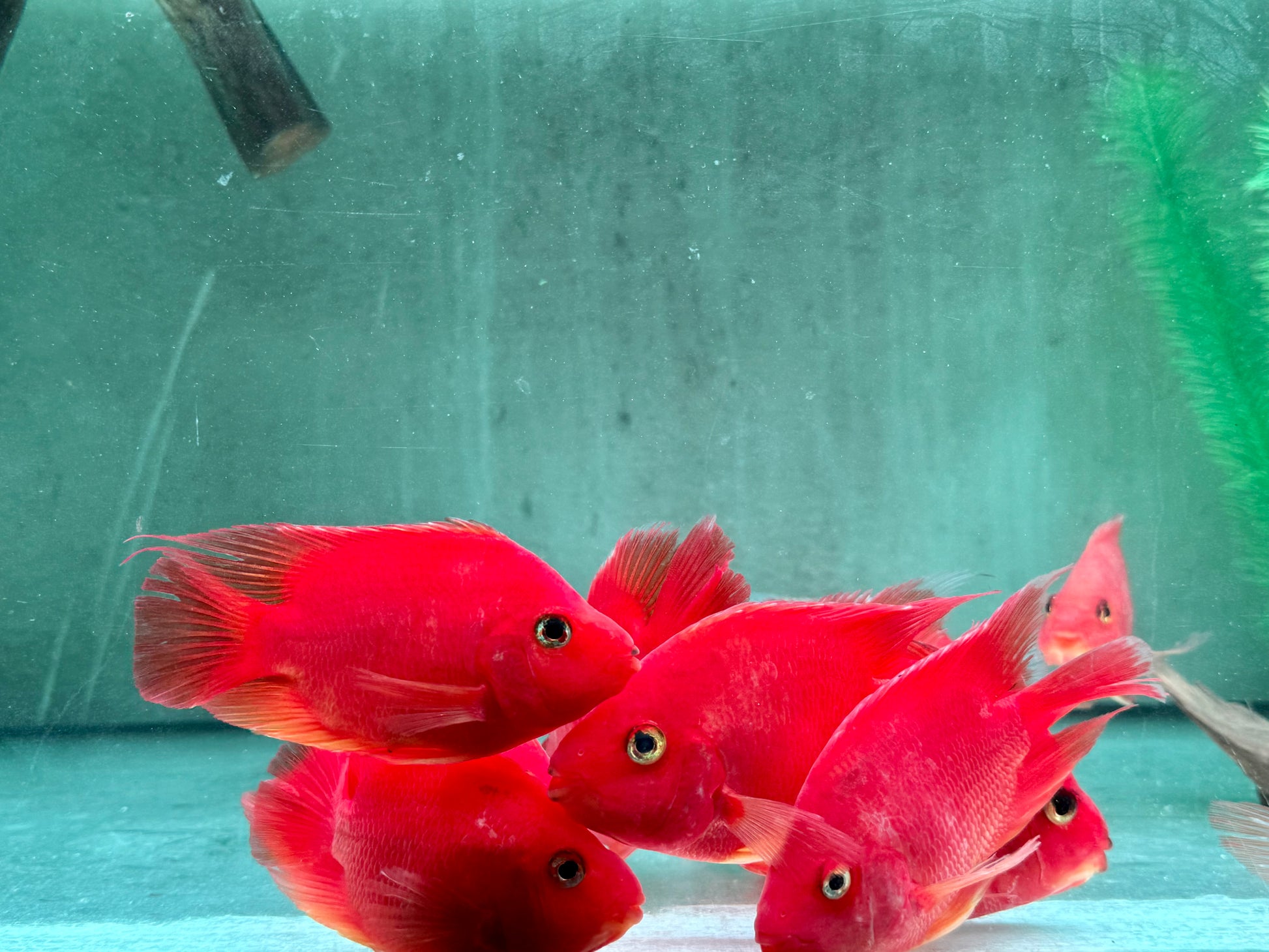 - Einzelhaltung oder in Gruppen: Bloody Parrots sind semi-aggressiv. Eine Haltung in kleineren Gruppen kann Aggressionen im Zaum halten, jedoch kann es in zu kleinen Becken zu Revierkämpfen kommen.