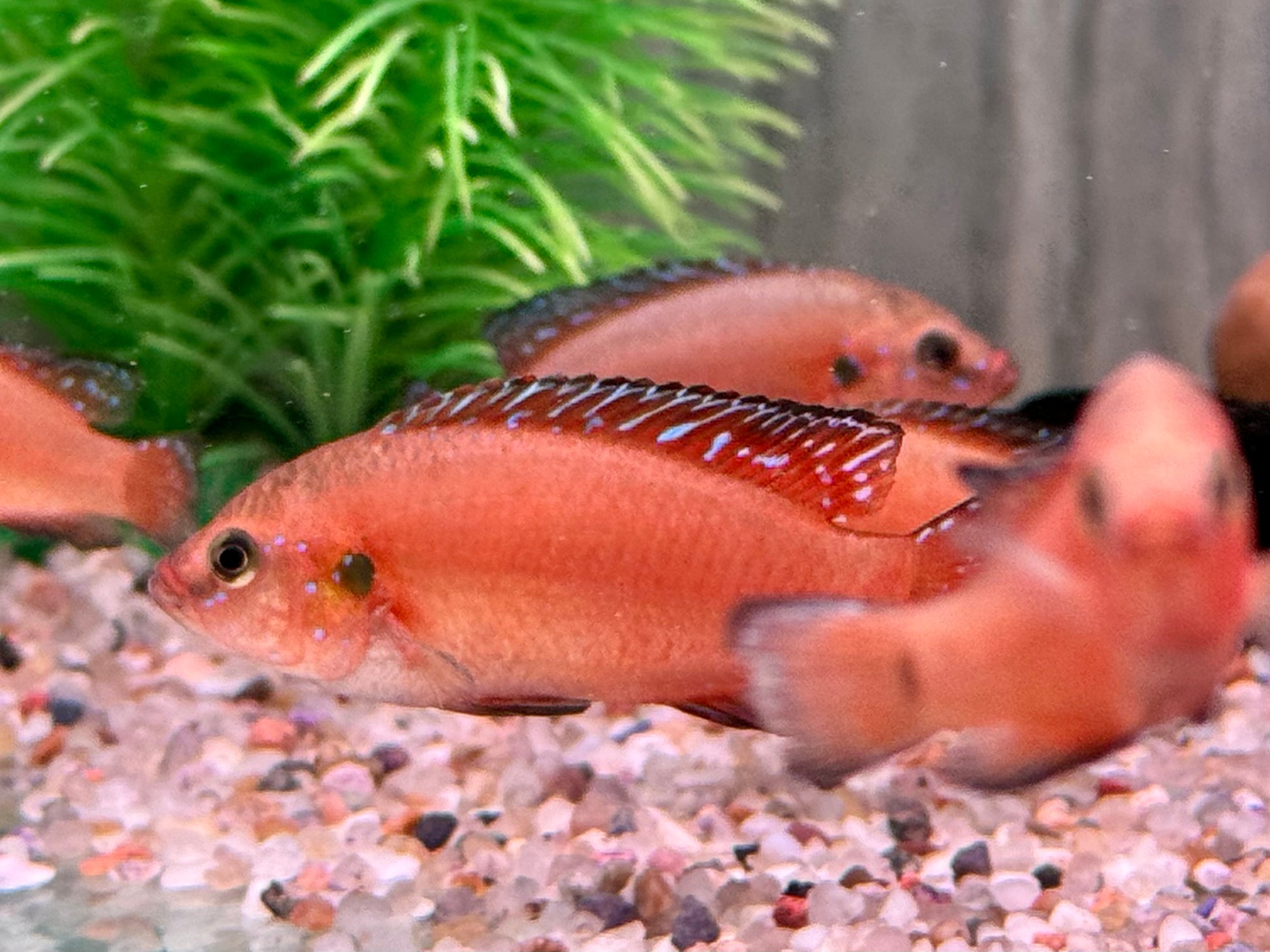 Der Rote Turkana Buntbarsch (Hemichromis exsul) ist eine attraktive und lebhafte Fischart, die in den Gewässern des Turkana-Sees in Ostafrika heimisch ist. Diese Art zeichnet sich durch ihre leuchtend roten Farben und das lebhafte Verhalten aus, was sie zu einem beliebten Fisch für erfahrene Aquarianer macht. Der Rote Turkana Buntbarsch ist relativ pflegeleicht, jedoch ist eine artgerechte Haltung erforderlich, um sein Wohlbefinden zu gewährleisten.