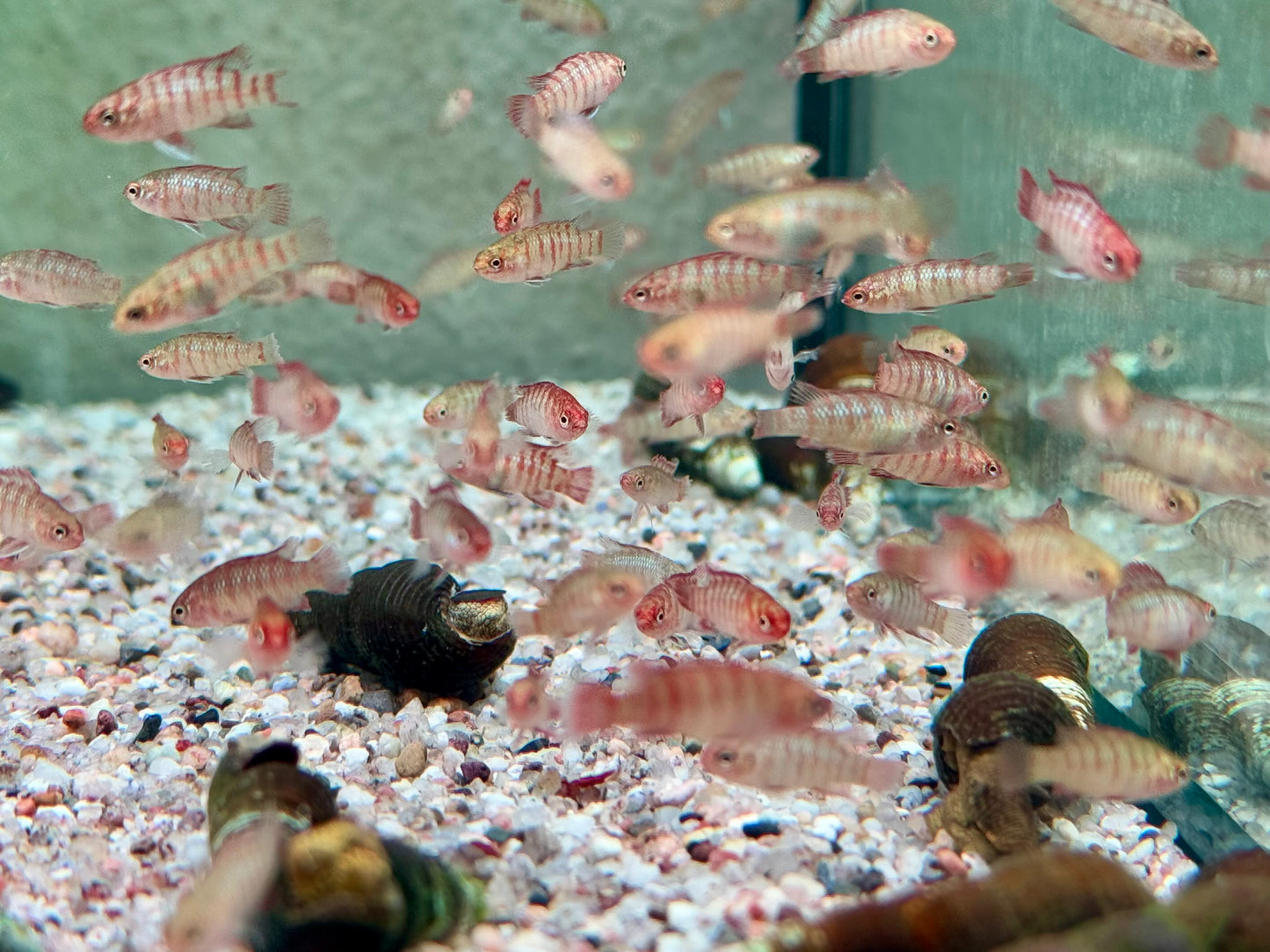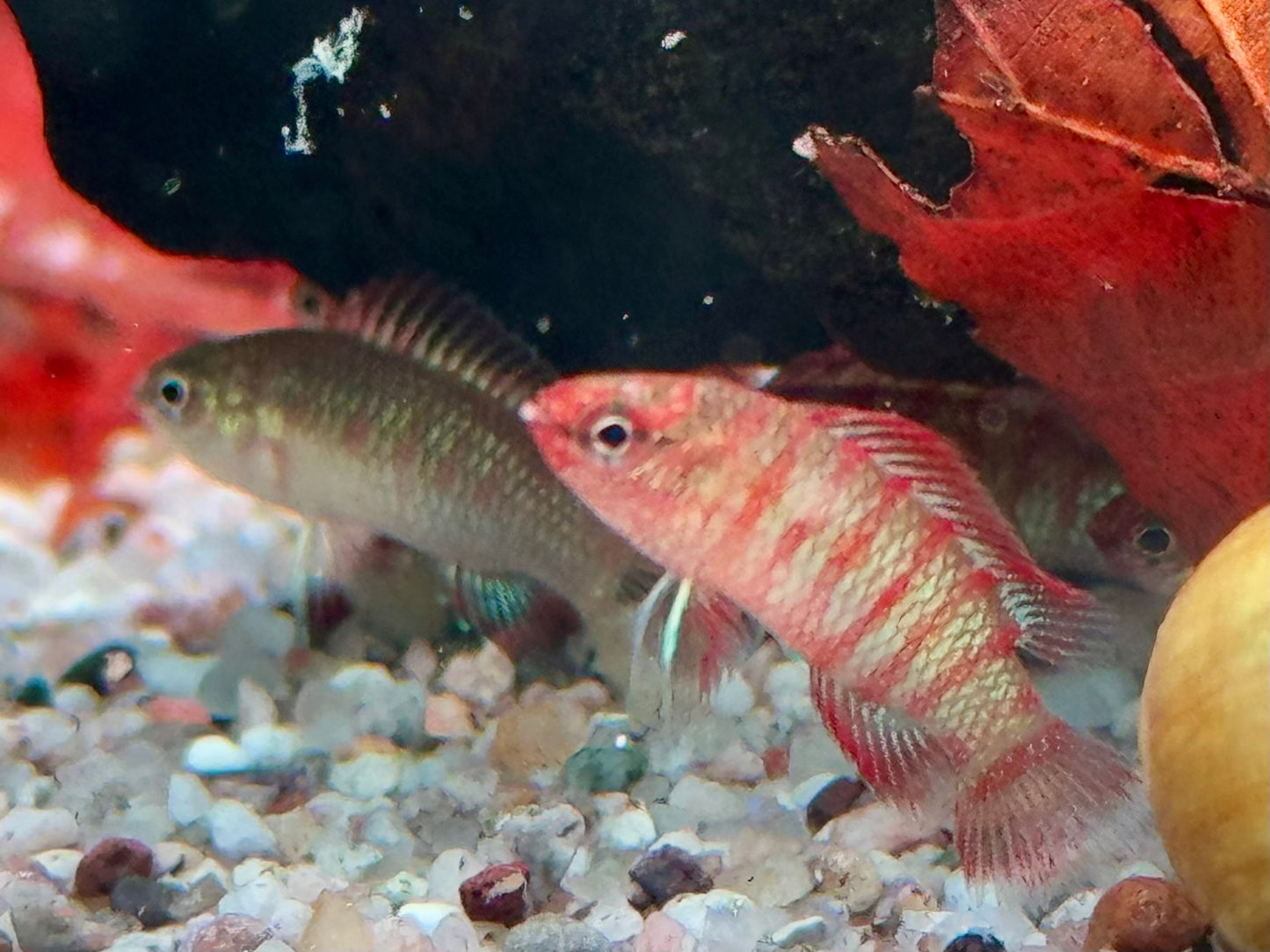 - Wasserwerte: Der Scharlachrote Zwergblaubarsch bevorzugt weiches bis mittelhartes Wasser mit einem pH-Wert von 6,0 bis 7,5 und einer Wassertemperatur von 22°C bis 28°C. Regelmäßige Wasserwechsel sind wichtig, um die Wasserqualität zu erhalten.