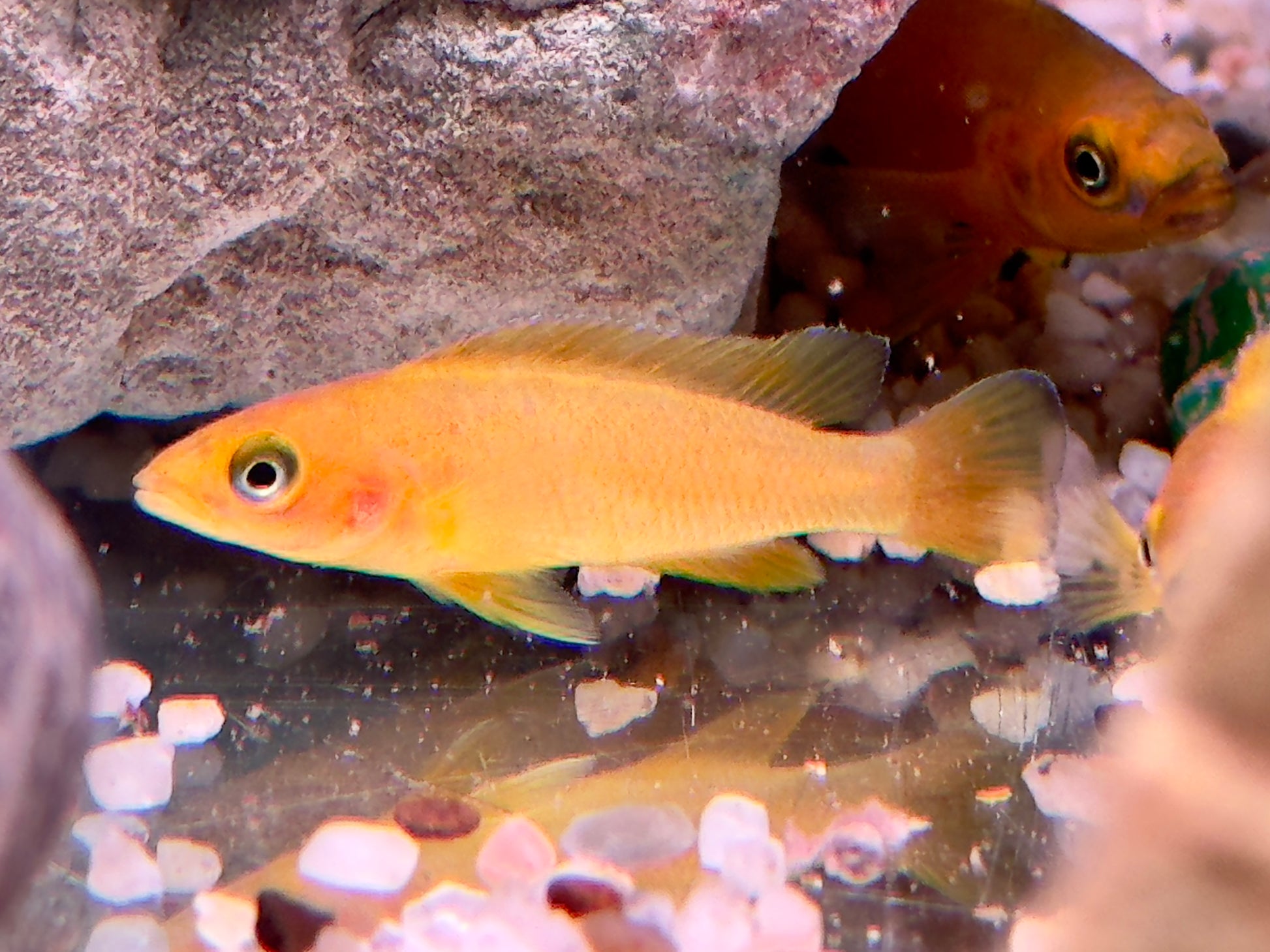 - Tanganjika Goldcichliden sind territorial, daher sollten sie nur mit anderen friedlichen, nicht zu kleinen Fischen vergesellschaftet werden. Sie eignen sich besonders gut für Aquarien mit anderen Cichlidenarten aus dem Tanganjikasee, die ähnliche Wasserwerte und Anforderungen an das Habitat haben.